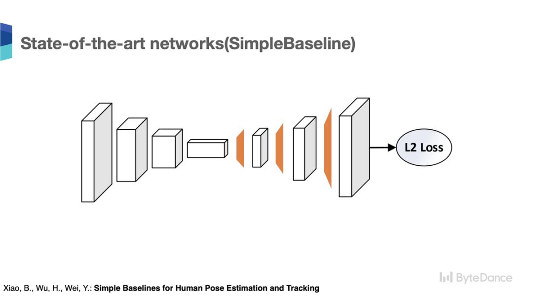 2018 ECCV 会议上,在人体姿态关键点检测任务中,微软亚洲研究院提出了一种通过三层级联的反卷积方法——Simple Baseline[3],来解码 ResNet 主干网路的低分辨率特征。这个方法很简单,但在人体关键点识别任务中取得了非常不错的成绩。Simple Baseline 的方法也遵循了从高分率到低分辨率学习,然后从低分辨率特征恢复高分辨特征的原则。