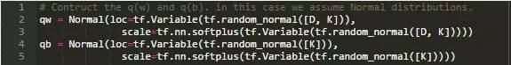 接下来我们将使用Edward库来设置权重和偏差的近似分布Qω(ω)和Qb(ω):