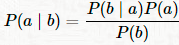 假设有两个事件a,b,想要计算在事件b发生的条件下事件a的条件概率,记作P(a|b)。贝叶斯法则定义如下: