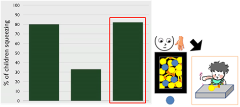 如果蓝色球能被捏响,那么很可能箱子里所有的球都能被捏响。此时,递给婴儿一个黄色球,捏球的机率就会上升。结果,实验数据与她的猜想是一致的。