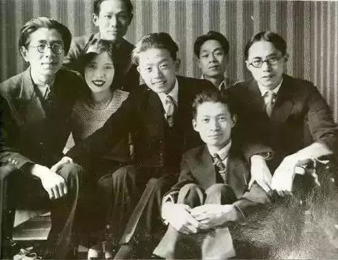 ►1934年,中国留法艺术家学会成员在常书鸿家中聚会,从左至右为常书鸿、陈芝秀、王临乙、陈士文、曾竹君、吕斯百、韩乐然
