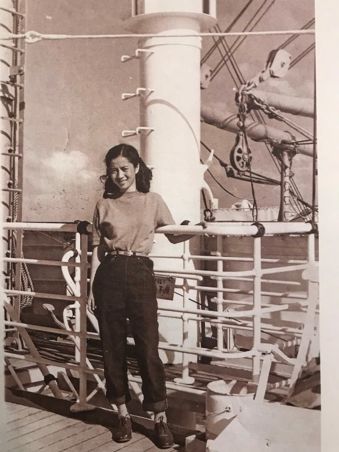 ►1950年12月,穿着红毛衣、牛仔裤的常沙娜在威尔逊总统号船返回祖国途中。