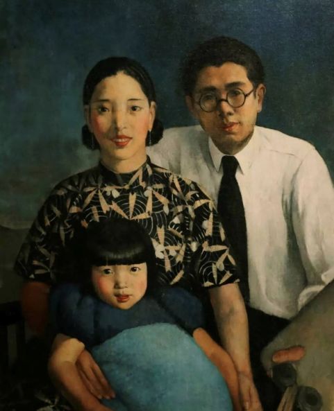 ►常书鸿1934年创作的油画作品《画家家庭》,以自己的家庭为模特,宝蓝色色调的背景上,妻子陈芝秀穿着中式旗袍,女儿沙娜依倚在母亲怀中,受宠之态惟妙惟肖,作为年轻画家的他则手持画具、脸上洋溢着踌躇满志的神情。这幅画在巴黎的春季沙龙获得银质奖章。