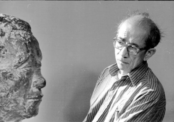 ►旅法画家熊秉明雕塑父亲熊庆来像。