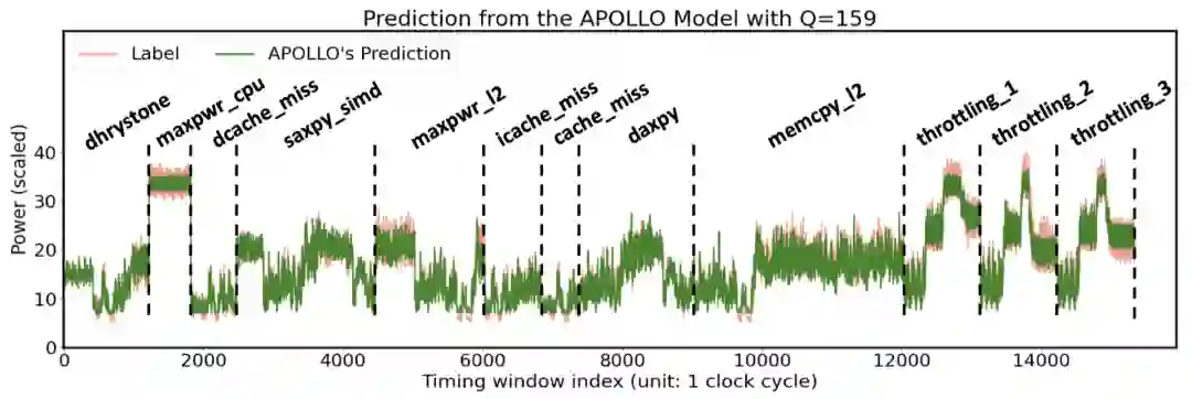 另外APOLLO的功耗分析可以精确到每个时钟周期(cycle),之前任何方法在这种速度下都无法获得这样的高分辨率 (temporal resolution) 的功耗分析。