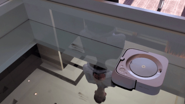 在现场的湿擦体验中,PingWest品玩看到,iRobot Braava jet m6机器人会先向前走一段,确认路径上障碍物的情况。