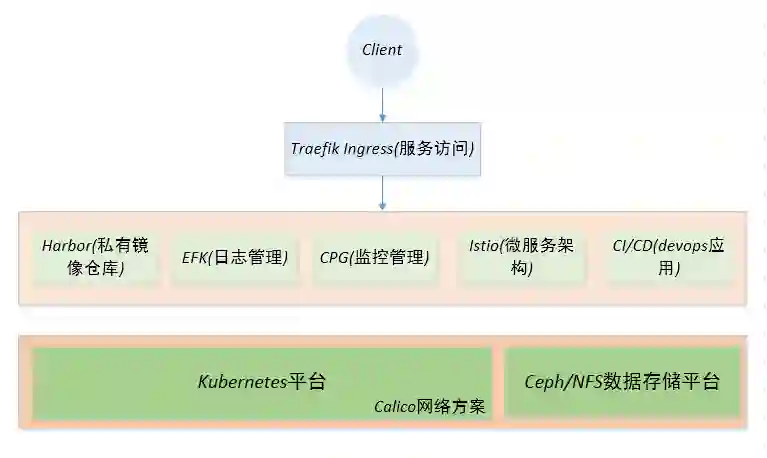 服务访问层:即由Traefik ingress实现服务发现、负载均衡和路由规则定义等;