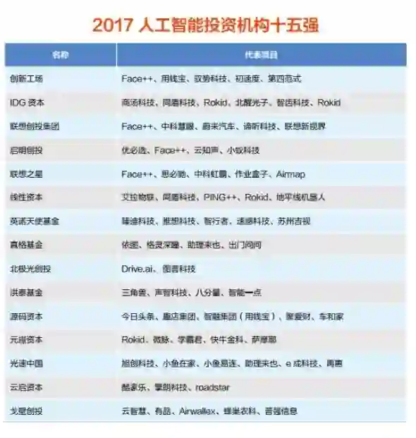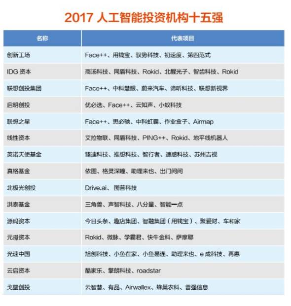 据了解,该榜单评比的依据,是投资机构在人工智能领域的投资实力以及投资回报率。