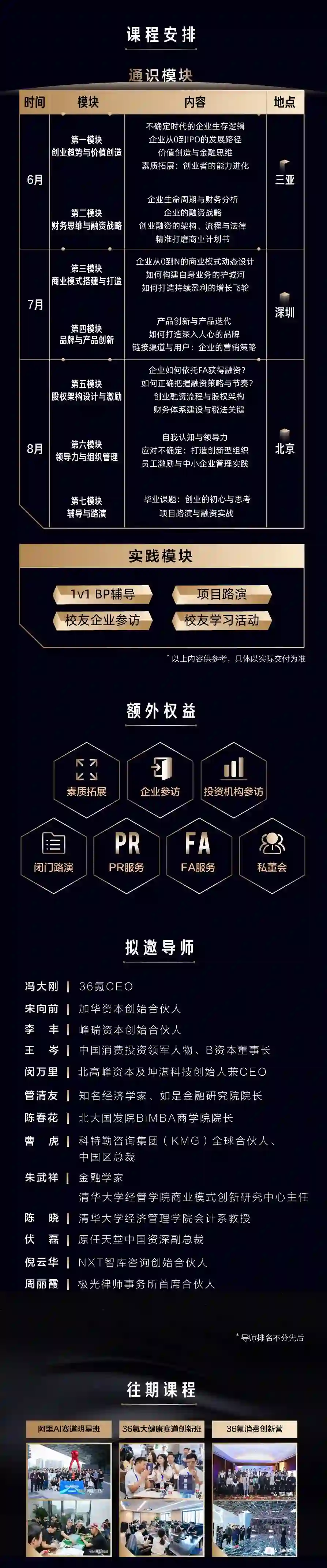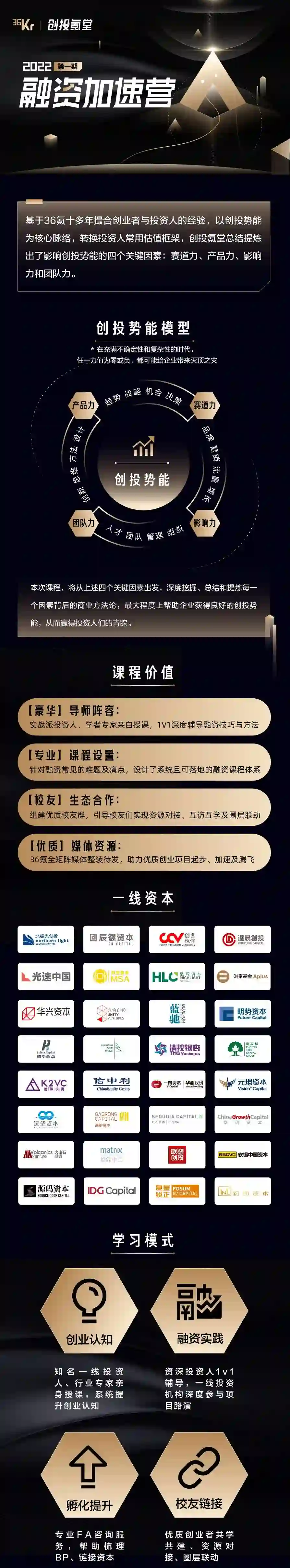 在此时间点,36氪上线“创投氪堂”,想要通过11年积累的创投资源和产品技术手段,揭秘创业不死法则与融资诀窍,通过知识赋能和深度陪跑方式,为创业者成长进化赋能加速。