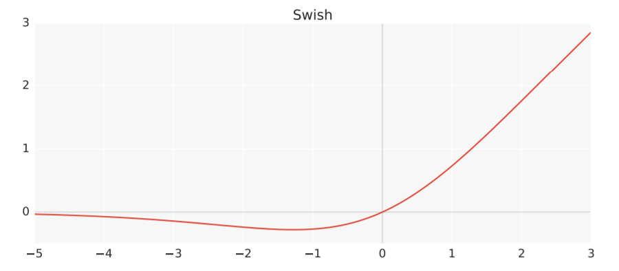 ReLU函数似乎已经作为深度神经网络激活函数的标配,因其收敛快,而谷歌的大神Quoc V. Le最近提出了一种新的激活函数,取名为Swish,形式非常简单:f(x)=x*sigmoid(x),图像如下所示,文中指出Swith在一系列任务上表现要比ReLU要好,期待TensorFlow尽快把这个函数加进去吧。[2]