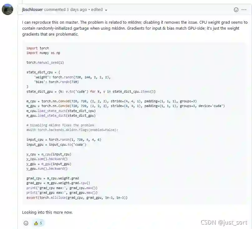 并且很快获得了PyTorch团队的回复,他们确认是MKLDNN那部分实现出了问题,并表达了感谢以及他们正在修复这个问题。