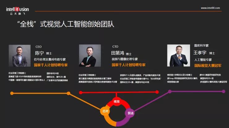 下面简单介绍下我们的联合创始团队,是一个涵盖了芯片、视觉系统和深度学习算法三大领域的“全栈式”视觉人工智能创始团队。