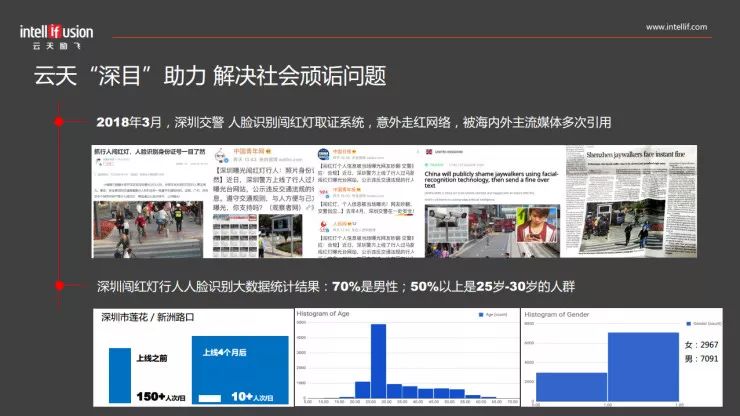 目前这套人脸抓拍系统在全国的前端设备已经超过了1万多路,累计破获了将近5000起案件,其中有4000多起在深圳。此外,它在全国范围内协助公安采集的高质量、可标注、可训练的动态人像数据已经超过了80亿张,而且这一数量还在以每周数亿张的速度增长。