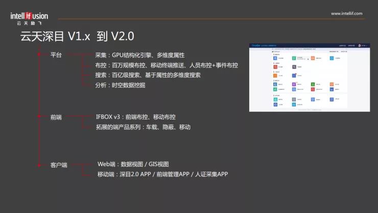 深目2.0的核心功能还是数据采集、布控和检索。此外,它还在后台增加了一系列面向各个警种的应用和进行数据挖掘的模块,围绕着整个城市级的动态人像践行一人一档的理念。