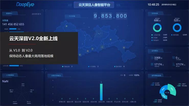 上图展示的是我们近期推出的深目2.0的系统。深目2.0的核心理念是以GIS地图为基准,让公安民警和指挥中心可以从上帝之眼的角度去俯视、管理整个城市;把人员轨迹、布控行为以及整个城市的分析、一人一档的分析映射到一个GIS地图上;把时空进行回溯,将时空、人、事件、物进行关联。并在这样一个地图的基础上,自动地去分析统计各类数据。