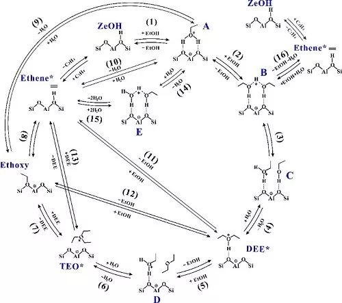 图2. 乙醇脱水生成乙烯的催化反应机制