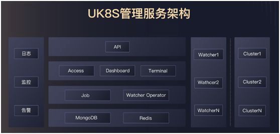据悉在管理服务方面,UK8S支持完全的容器化和微服务化,可以确保所有管理服务全部运行在内部KUN平台上,基于KUN的API对服务模块进行动态管理;一个集群对应生成一个Watcher,容易进行横向扩展;基于Watcher+Redis缓存的方式,保证用户在控制台获取集群信息的速度足够快,相当于用K8S管理K8S。