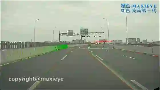 针对地图类的合作伙伴,Maxieye可以提供车道线车辆局部坐标系中的三次曲线方程、路沿车辆局部坐标系中的三次方程曲线、停车线车辆局部坐标系的坐标方程、驾驶场景类别(隧道入口、隧道出口、隧道内、判断白天、黑夜)。地图厂家可以在Maxieye的信息基础上叠加GPS绝对坐标,产生目标的绝对坐标,从而生成地图。