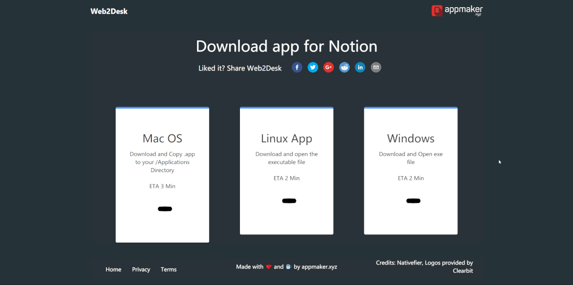 Web2Desk 让我们可以直接输入网页链接、应用名称和应用图标,然后经过其在服务器上面的构建,直接给我们提供 Windows、macOS 和 Linux 的原生安装程序的下载。