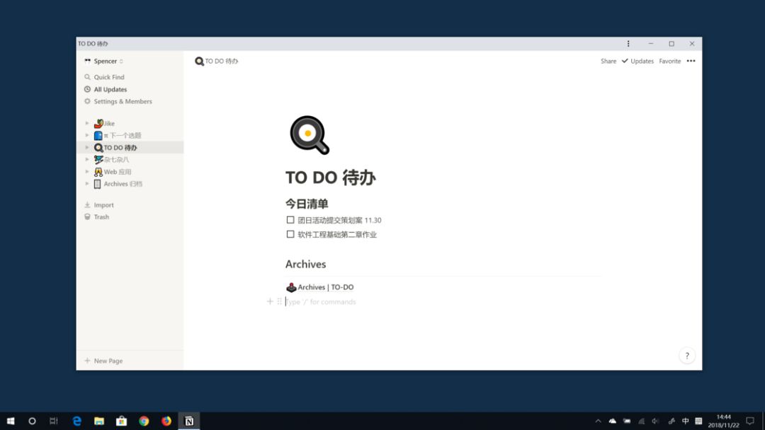 说实话,我这样推崇将网页端直接用作桌面应用程序的使用方法,主要就是为了 解决 Windows 上面 Chromium 应用糟糕的中文字体渲染。比如 Notion 和 Slack,他们两个的 Windows 桌面客户端都将中文直接渲染成了宋体,在应用的 UI 中使用衬线体太影响使用体验了。
