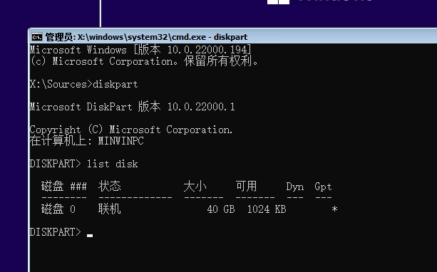 接下来,我们需要 GPT 分区,GPT 分区是 UEFI 标准的一部分,方法很简单,输入
