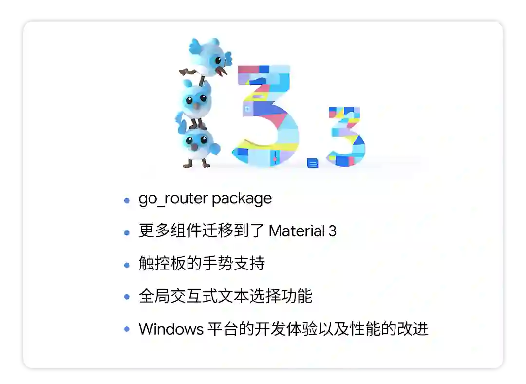 Flutter 产品经理樊舟颖也提到新发布的 Flutter 3.3 专注于完善和性能改进,还增加了一系列新功能以优化开发体验。