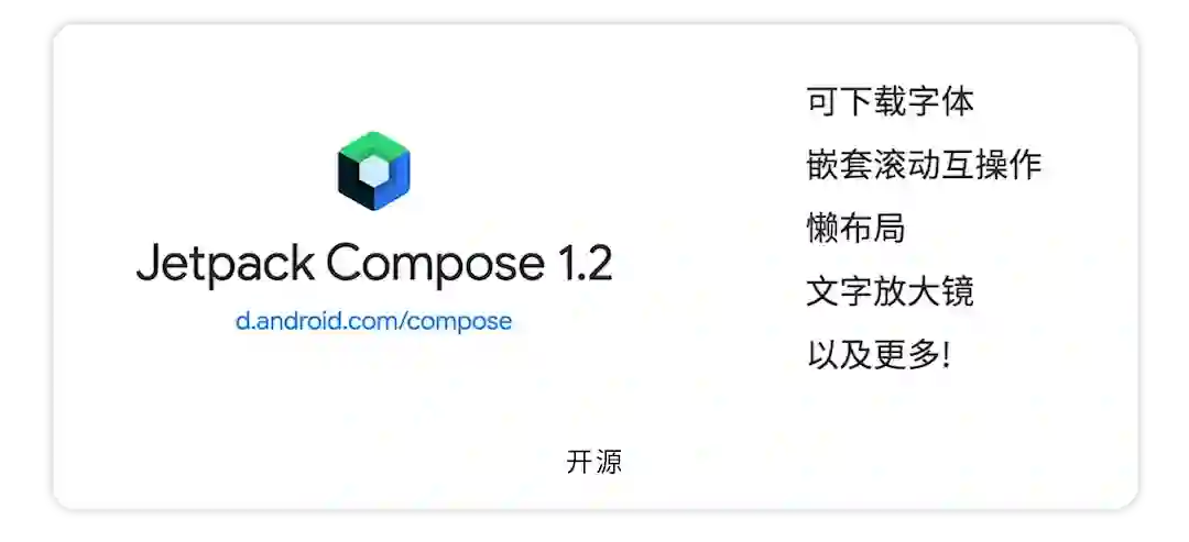 现代 Android 开发工具也进一步提升开发者生产力,其中 Android Studio 新功能将助力高效构建优质应用,Jetpack Compose 1.2 稳定版也已发布,帮助开发者在创新中更得心应手。