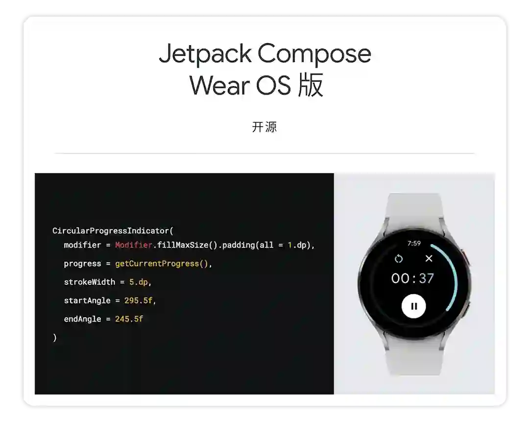Android 也发布了 Jetpack Compose for Wear OS,帮助开发者们将过去的开发经验应用于构建手表屏幕的体验,构建更精美的可穿戴设备应用。