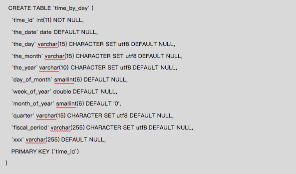 3、product_class表4、 time_by_day表