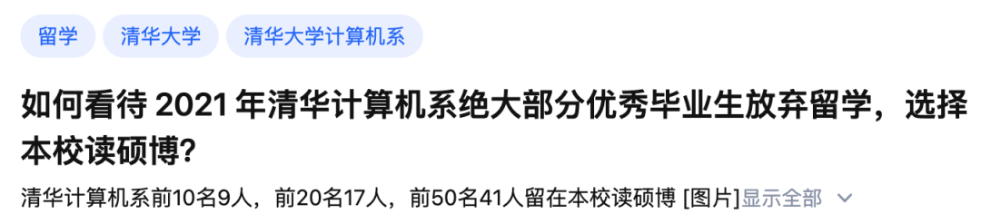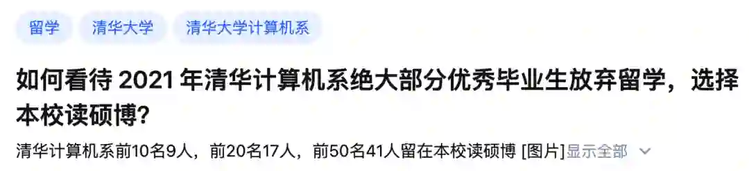 引发网友热议的今年清华计算机系大量优秀毕业生放弃留学,选择校内深造的现象。