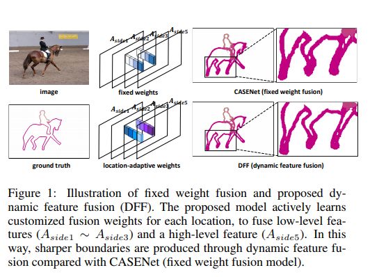 语义边缘检测旨在联合提取边缘及其类别信息,以实现领域中的高端应用,包括语义分割,对象识别等。DFF是第一个旨在学习自适应融合权重的研究工作,它以输入数据为条件,在SED研究中融合多层次特征,以促进和实现SED任务的最新技术。通过考虑高级和低级主干特征映射,可以改善位置自适应权重学习器。