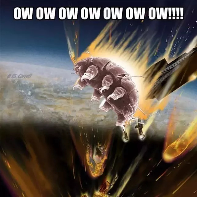 在2017年发表的一篇论文中,三个天体物理学家做了些脑洞大开的设想:来一场什么样的天体物理大灾难,能把地球上所有的生物全都弄死?不出意外地,他们选择了水熊虫作为全世界生物的最后防线。至于人类嘛,反正在那之前早就死得脆脆的了。