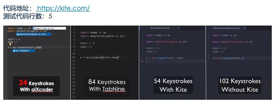 aiXcoder 官方也将产品和其他代码补全工具进行了对比,包括 Kite 和 TabNine 等。