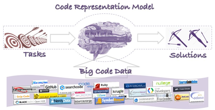 但是在代码生成方面,从编程者的意图(intent)生成程序代码的问题,可以看做是「程序员意图空间」到「程序代码空间」的映射,其中意图可以是由自然语言描述的信息。