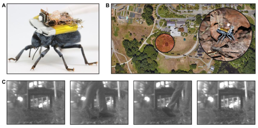 对于活的昆虫来说,无线第一人称视角代表了一种之前从未展示过的能力。这可以用于研究昆虫的行为,例如在会受到控制的实验室环境之外,它们如何感知和相互作用,以及它们与环境之间的相互影响。