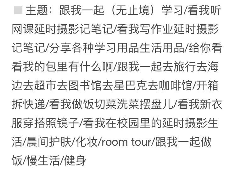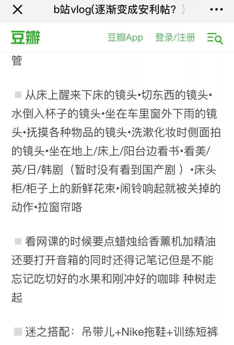 史里芬举了个常见剧情:一个普通的大学女生,礼拜六早上从她的宿舍上铺下来,化好妆之后已经11:50了,然后领一份外卖,接到外卖吃完,对镜头说自己今天要去见几个闺蜜,再顺便去某个高端文艺书店听一场讲座。这就是它的主要内容。
