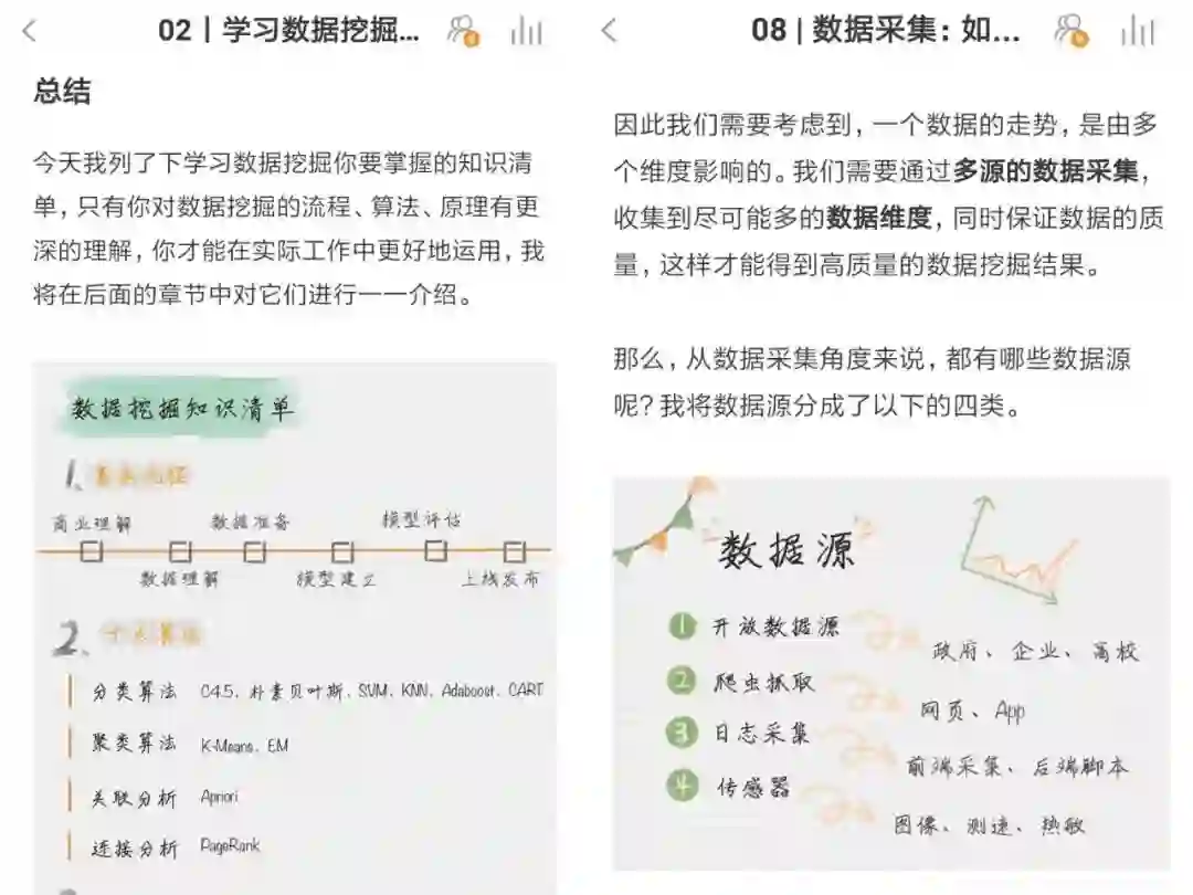 第一:图文并茂,我发现,用手绘图片可以把知识要点总结的非常清晰。很多数据分析的学习资料里可没有这些,算是给每个读者的专属福利了;