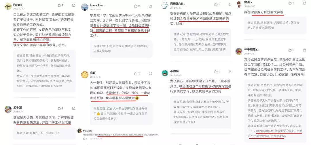 没记错的话,这个《数据分析实战 45 讲》专栏,上线没几个月,已经超过 1.25w 人加入学习,截了点评价给你们做参考: