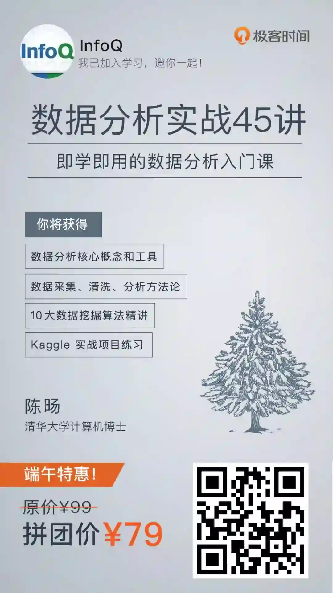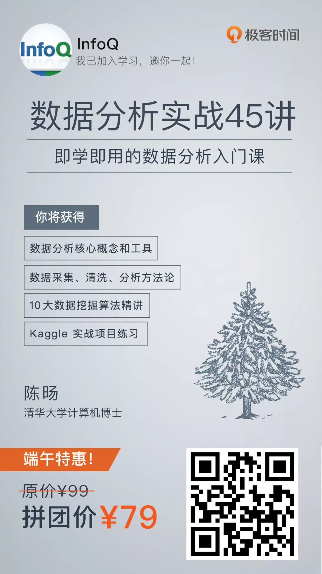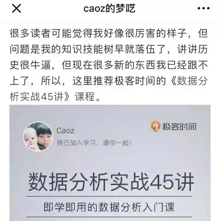 《数据分析实战 45 讲》端午优惠,只需¥79,原价¥99,便宜 20 元,但仅限今天 24 小时。想扩大自己能力边界,想在职场有更多选择的同学们,请抓紧搭上这个快车。