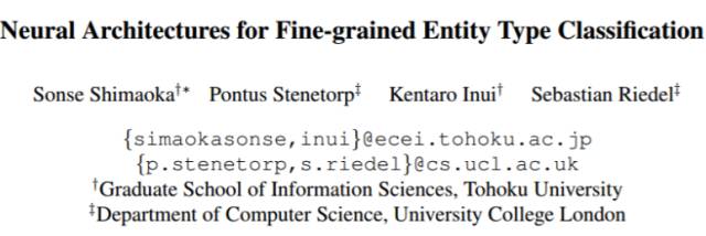 论文四:用于细粒度实体类型分类的神经架构(Neural Architectures for Fine-grained Entity Type Classification)