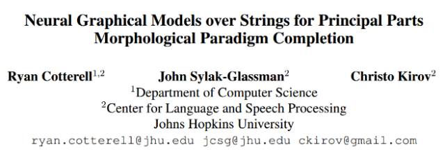 论文二(短论文):用于实现主体构形范式的基于字符串的神经图模型(Neural Graphical Models over Strings for Principal Parts Morphological Paradigm Completion)