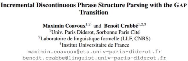 论文三:使用 GAP 过渡的增量不连续短语结构解析(Incremental Discontinuous Phrase Structure Parsing with the GAP Transition)