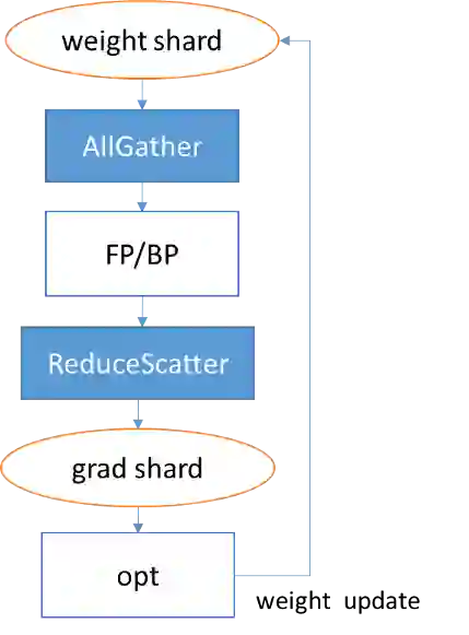 将优化器涉及到的参数和梯度切分到多台设备上。以 Adam 优化器为例,其内部可能有多份与权重同等大小的「动量」需要参与计算。在数据并行的情况下,每个卡都拥有完整的「动量」,它们在每个卡上都重复计算,造成了内存及计算的浪费。通过引入优化器并行,每个卡只保存权重及「动量」的切片,能降低每个卡的静态内存及提升计算效率。