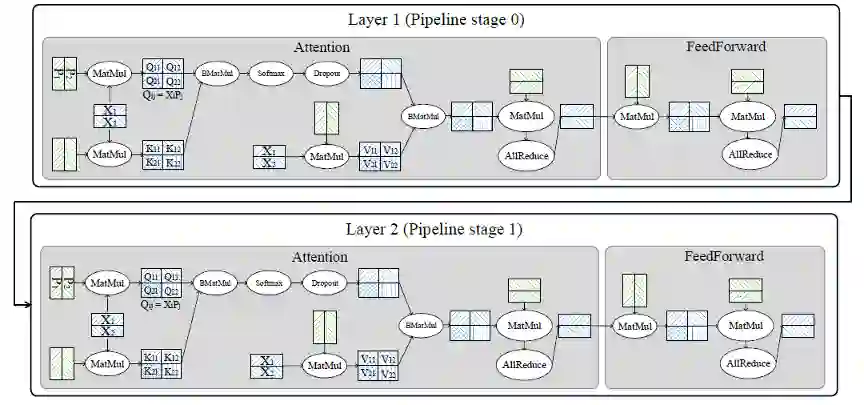 如下图中的 Q,K,V 的参数在实际中(按列)被切了 8 份,输入张量(按行)被切了 16 份,输出张量因此被切了 128 份(8*16)。重计算配置是配置在每层内的,也就是重计算引入的多余的计算量不会超过一层的计算量。总计,MindSpore 使用了 2048 块昇腾处理器来训练盘古。