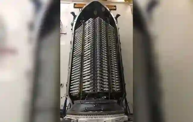 这是此前马斯克在twitter上披露的60颗卫星叠放在猎鹰9火箭整流罩内的情景