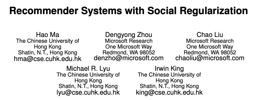 获得WSDM 2022「时间检验奖」的工作是来自香港中文大学的“Recommender Systems with Social Regularization”。