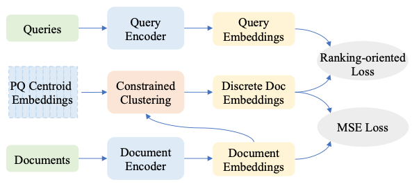 该模型基于有约束聚类方法端到端地联合优化文本编码器和向量量化过程,RepCONC约束稠密向量被均匀地分配到不同的量化中心,从而大幅提升了稠密向量表示的可辨别性,改善了检索性能。