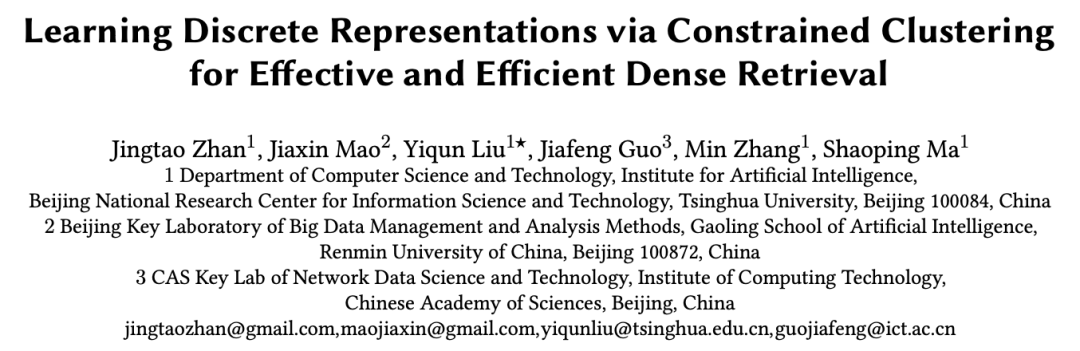 据大会官网信息,清华大学获得今年WSDM唯一最佳论文奖的工作是“Learning Discrete Representations via Constrained Clustering for Effective and Efficient Dense Retrieval”(基于有约束聚类的离散表示学习提升稠密向量检索性能)。