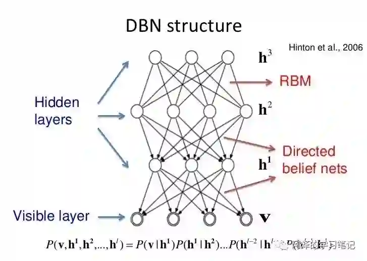 DBN 可以视为由多个 RBM 串联起来的结构,下图为最终训练得到的模型:
