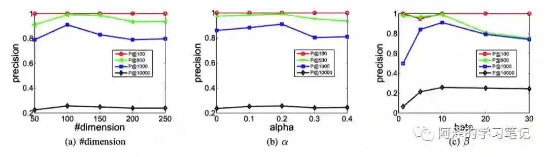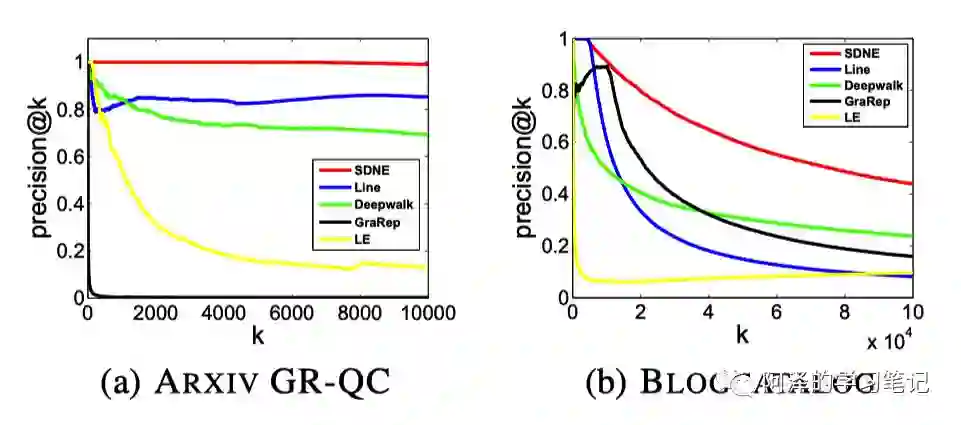 我们来看一下 SDNE 在不同数据集下,采用不同评价指标(MAP、Precision)的性能表现: